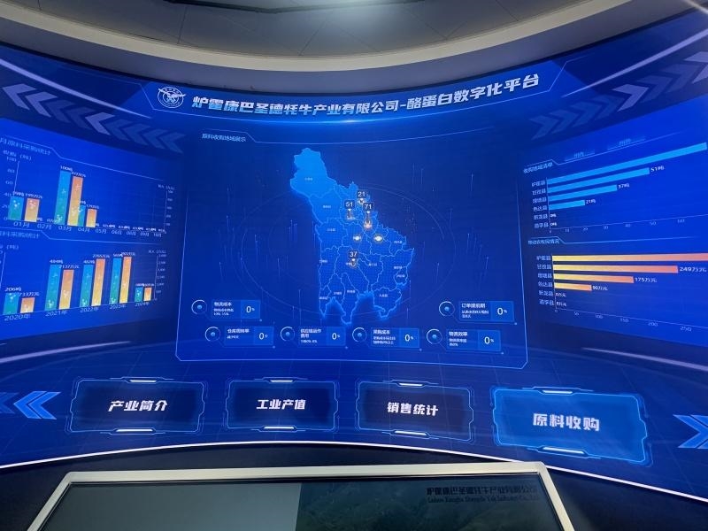 2023年,锦江区帮助引进京东方艺云科技有限公司,建设炉霍县牦牛产业集群酪蛋白深加工园区农产品交易中心,帮助炉霍县打通一条“外拓通道”。”这里有车间数字化中控平台、数字化参观通道、跟高校联通的数字化产学研中心、酪蛋白产业大数据中心等,利用大数据分析技术,对历史数据和实时数据进行深入挖掘,为农业生产提供科学的决策支持。”京东方艺云科技有限公司在炉霍成立的下属公司甘孜州康创未来数字科技有限公司负责人蒲戈介绍,数字化工厂可以与供应链管理系统相连,实现原料从养殖、收获、加工到销售的全过程追踪和管理,提高供应链效率,降低物流成本,提升产品的市场响应速度。同时,通过实时空气、给排水、环境数据传控,数字化工厂可以帮助工厂实现生产的环境保护和可持续发展。