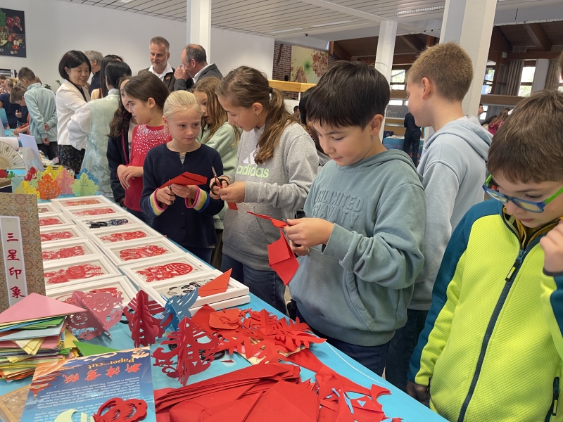 剪纸艺术是最古老的中国民间艺术,也是中国十大国粹之一,作为一种镂空艺术,它能给人在视觉上以透空的视觉感受和艺术享受。在德国汉斯-卡罗萨-兰茨胡特文理中学、迪特福特中学,希腊雅典64小学、雅典普希贡第一小学、雅典中文学校开展教学中,高慧兰从剪纸文化起源、历史发展、剪纸技法、现场剪纸示范四个方面进行了精彩讲解。现场剪纸过程中,同学们在高老师的指导下,学会了“春”和“喜”字的折法和剪法。