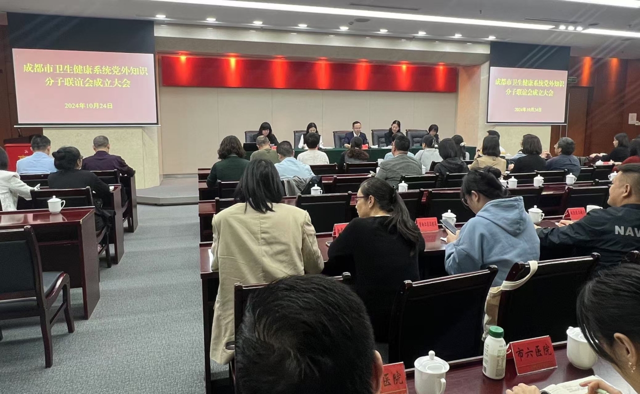 10月24日,成都市卫健系统党外知识分子联谊会成立大会顺利召开。市卫健委党组成员、副主任黄辉出席会议并讲话,民盟成都市委会副主委、市卫健委副主任黄友静代表市卫健系统民主党派致贺词,各区(市)县卫健部门、委各直属单位、成都大学附属医院有关负责同志,市卫健系统知联会全体会员参加了会议。