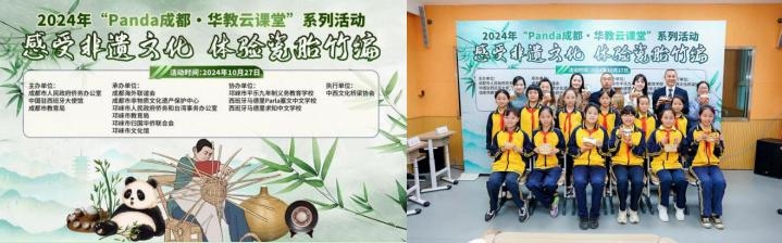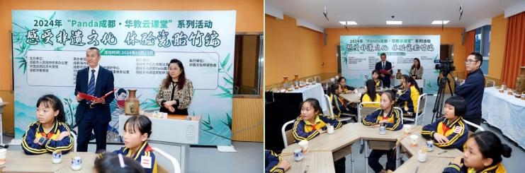 瓷胎竹编是成都地区独特的传统手工艺品,2008年被列入第二批国家级非物质文化遗产名录。为了传播中华优秀传统文化,扩大华文教育海外影响力,让海外华裔学生感受非遗文化,了解瓷胎竹编,2024年10月27日,由成都市政府侨办、中国驻西班牙大使馆、成都市教育局主办,成都海外联谊会、成都市非物质文化遗产保护中心、邛崃市政府侨台办、邛崃市侨联、邛崃市教育局、邛崃市文化馆承办,邛崃市平乐九年制义务教育学校、西班牙马德里Parla塞文中文学校和西班牙马德里求知中文学校协办的2024年“Panda成都·华教云课堂”之“感受非遗文化·体验瓷胎竹编”线上活动在邛崃市平乐九年制义务教育学校顺利举行。
