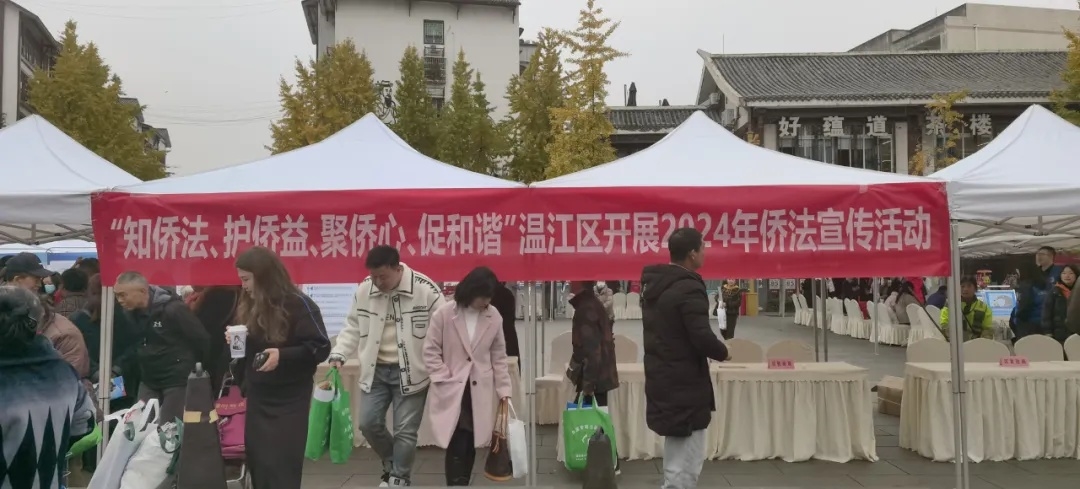 温江区委统战部于4日开展了“知侨法、护侨益、聚侨心、促和谐”侨法宣传活动。活动以《中华人民共和国归侨侨眷权益保护法》《四川省华侨权益保护条例》等涉侨法律法规政策为宣传重点。工作人员通过发放宣传资料、现场解答疑问等形式,向侨界人士介绍相关规定和政策。同时,活动现场还有精心策划的法治小品、法治相声等文艺汇演。
