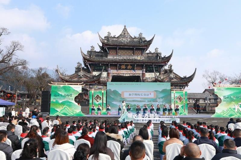 都江堰市在南桥广场举办了“我们的节日•雨水”暨中小学春季“开学第一课”活动,《二十四节气歌》、情景剧朗诵《春》、舞蹈《中华孝道》,用精彩的表演培养学生的文化自信,将孝道、感恩文化植根心中,从开学第一课中汲取精神力量励志启航。