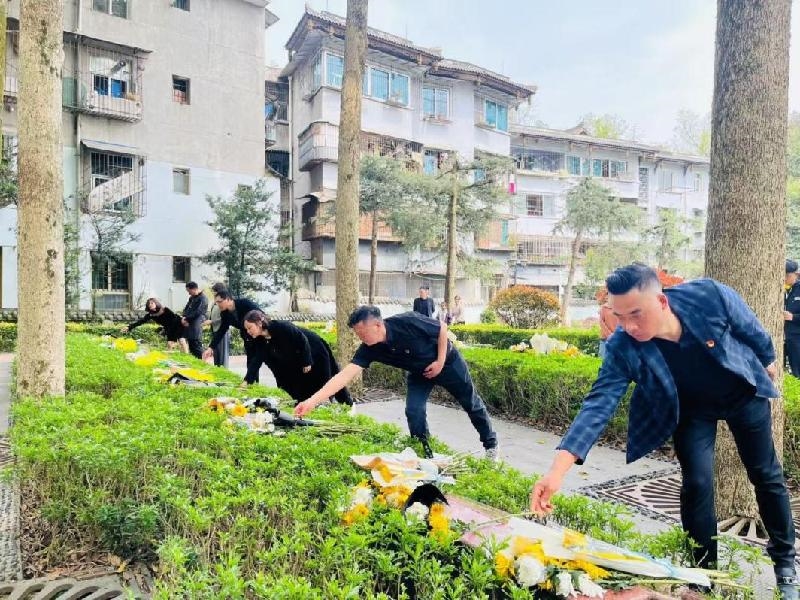 都江堰烈士陵园安葬着自辛亥革命以来不同历史时期的111位烈士。活动中,全体人员肃立于烈士纪念碑前,向为民族独立、人民解放和国家富强献出生命的先烈鞠躬默哀三分钟。随后有序绕行革命烈士纪念碑一周,敬献鲜花,深切缅怀革命先烈的丰功伟绩,追思他们不畏牺牲、无私奉献、忠诚为民的崇高革命理想,寄托对革命烈士的崇敬和哀思。