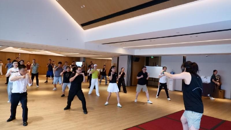 活动现场,专业有氧搏击运动员以一场刚劲有力的主题表演点燃全场热情。直拳、勾拳、踢腿等动作行云流水,将力量与美感完美融合,充分展现了搏击运动的独特魅力。在随后的互动体验环节,参与者们在教练指导下分组练习基础动作,从握拳姿势到发力技巧,一招一式间尽显专注与活力。“既能锻炼身体,又能认识新朋友,这样的活动很有意义!”区民主党派基层组织成员代表表示,通过运动不仅释放了工作压力,更感受到了统战大家庭的凝聚力。