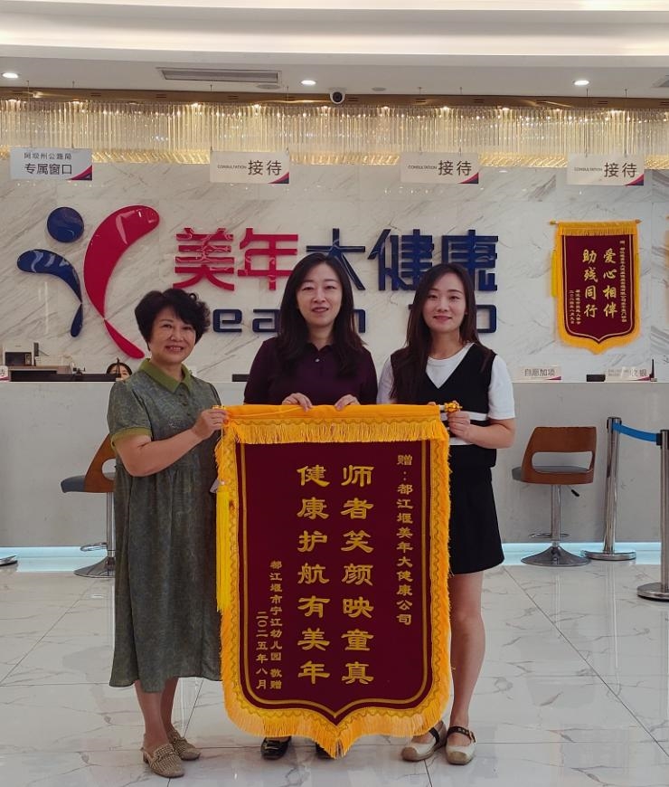 通过活动,帮助幼儿园教职工们了解自身健康状况,做到“早预防、早发现、早治疗”,进一步强化教师们的健康意识,提升大家的幸福指数,有效展现都江堰市知联会服务社会的风采。宁江幼儿园书记及园长为提供此次公益体检的都江堰美年大健康健康管理有限公司增送锦旗表示感谢。