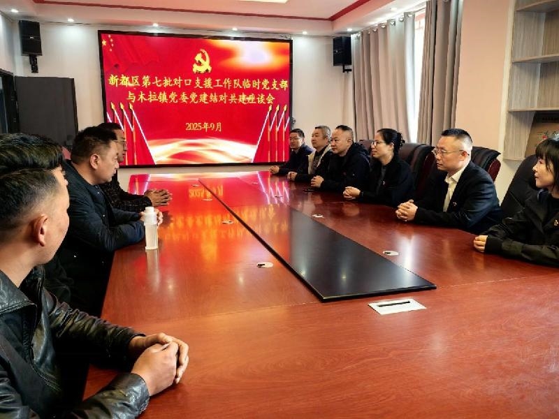 最后,新都区第七批对口支援工作队临时党支部与木拉镇党委就党建结对工作进行了座谈,详细了解了木拉镇当前经济社会发展情况,为下一步结对共建找准结合点打下了坚实基础。