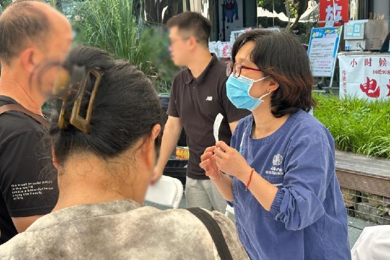 在“同心义诊”环节,来自成都新华医院、成都市第二人民医院、核工业四一六医院、成华区第三人民医院的专家团队在成华区新华公园北大门免费为市民群众提供血压、血糖、血脂、尿酸检测和颈动脉彩超检查,并现场接受市民群众关于中老年慢性病、心脑血管疾病的健康咨询。通过精准筛查与个性化健康指导,“同心义诊”共帮助 200余名市民群众现场了解了自己的身体状况,对部分潜在疾病风险做到了早发现、早干预,得到前来询诊的市民群众充分肯定。