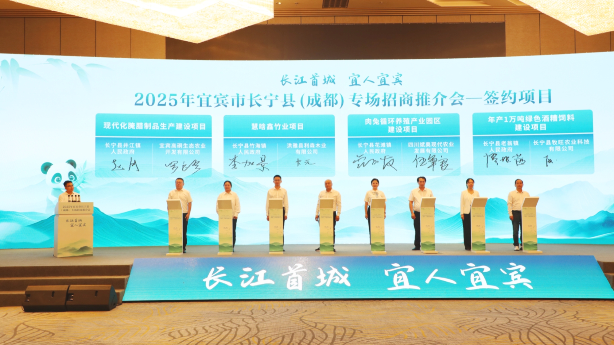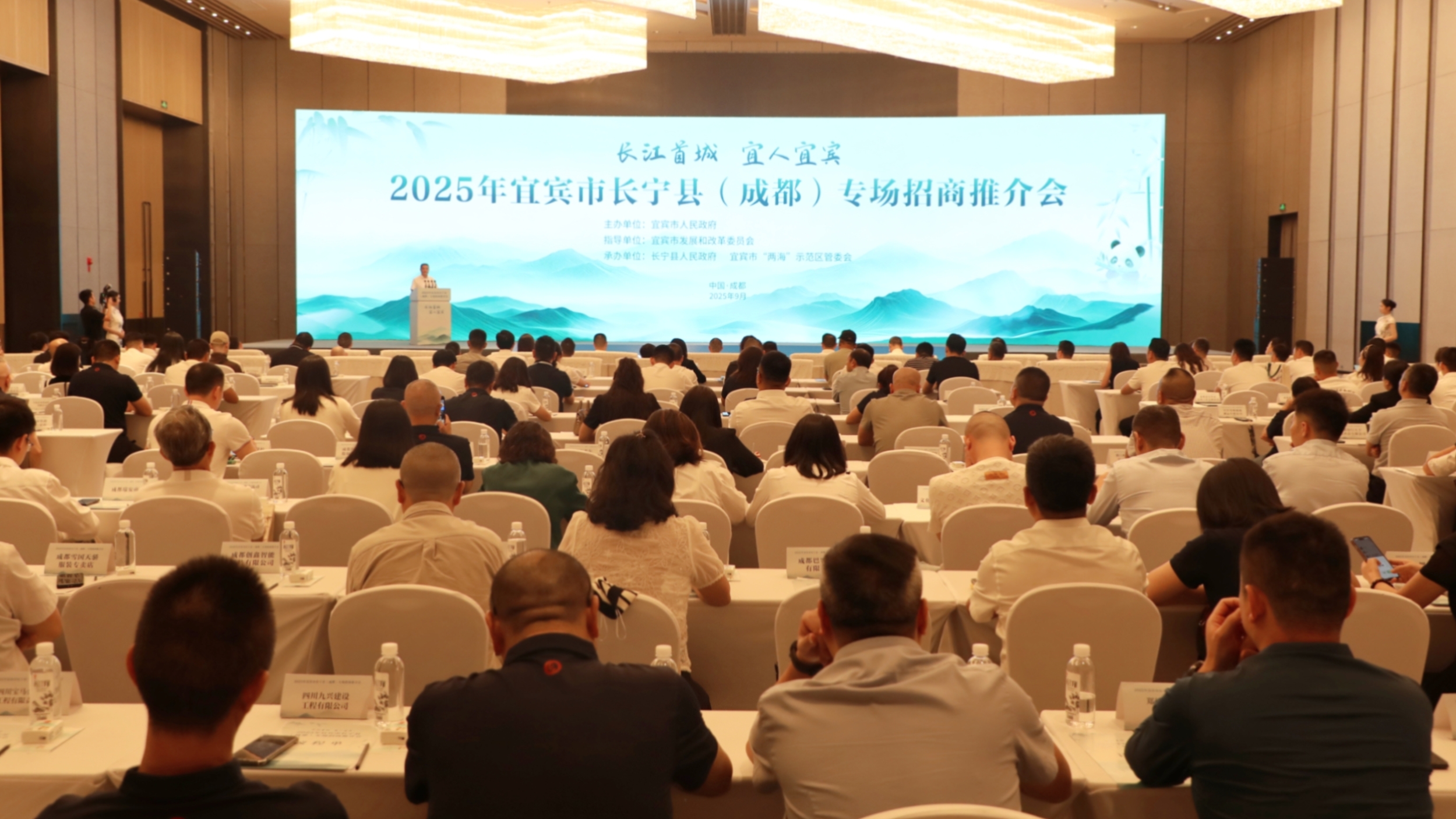 9月27日,由宜宾市人民政府主办,长宁县人民政府、宜宾市“两海”示范区管委会共同承办的“长江首城 宜人宜宾”2025宜宾市长宁县(成都)专场招商推介会在成都举行。来自协会组织、知名企业及各界嘉宾齐聚一堂,共话合作、共促投资,推动长宁县与成都地区企业深度合作,共谋发展新篇章。市驻蓉办党组书记、办事处主任黄斌,县人大常委会主任雷佑兴、县政协主席李宏斌、市以工代赈办公室主任黄娟、市经合新产局机关党委书记陈正、市林业和竹业局总工程师陈状、县决咨委主任周小平出席推介会,县委副书记唐辉出席并致辞。
