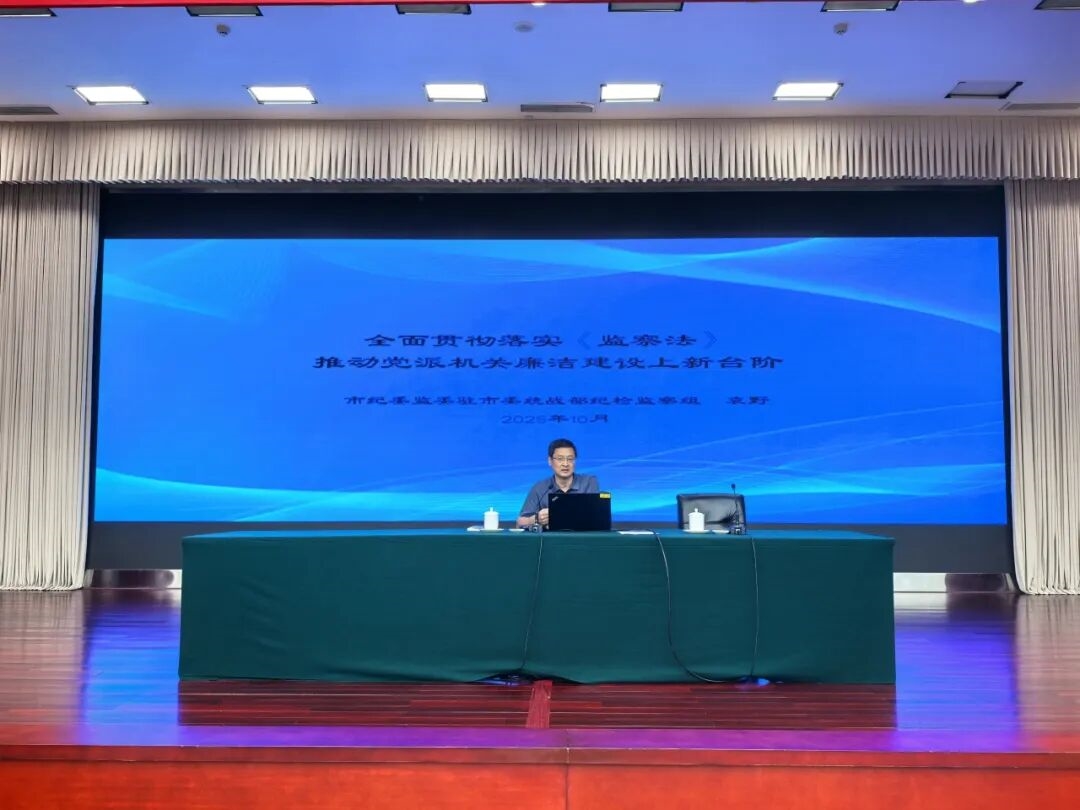 为进一步强化法治思维,教育引导统战系统干部职工知规知纪知法、守规守纪守法,持续提升依规依纪依法履职能力,10月16日,市委统战部举办2025年第四期“蓉城同心”大讲堂,邀请市纪委监委驻市委统战部纪检监察组组长袁野同志,围绕“全面贯彻落实《监察法》推动党派机关廉洁建设上新台阶”开展专题讲座。