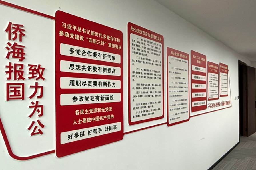 走进“致公驿站”,最先被吸引的是入口的“中国致公党党史荣光图片展示走廊”,近300张珍贵历史照片、大量文献资料,按“海外组党”“齐赴国难”“光明大道”“迎接解放”“共创新天”“策马扬鞭”“砥砺前行”七个篇章铺陈,像一部“会说话的致公党史”:1925年中国致公党第一次代表大会宣告中国致公党成立,记录着“侨党诞生”的初心;1948年中国致公党单独发表《响应中共中央“五一”口号宣言》,诉说着“与党同行”的抉择;1952年中国致公党第五次代表大会号召全党参加祖国工业化建设,展现着“家国情怀”的当代延续……这些已成为新党员了解党史的“第一课堂”,老党员重温初心的“精神殿堂”,统一战线史和多党合作史教育的“生动讲堂”。