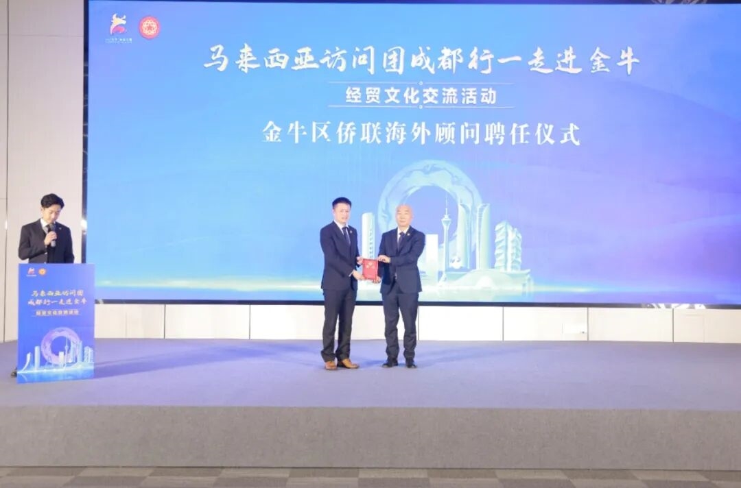 为推动长效合作机制建立,活动现场举行了聘任与签约仪式。金牛区侨联聘任吴限为海外顾问,以期借助其影响力与桥梁作用,进一步链接海外资源。随后,金牛区总商会与马来西亚川渝总商会签署合作协议,标志着双方建立了正式的民间经贸合作纽带,为后续企业间深度对接、产业协同奠定了坚实基础。