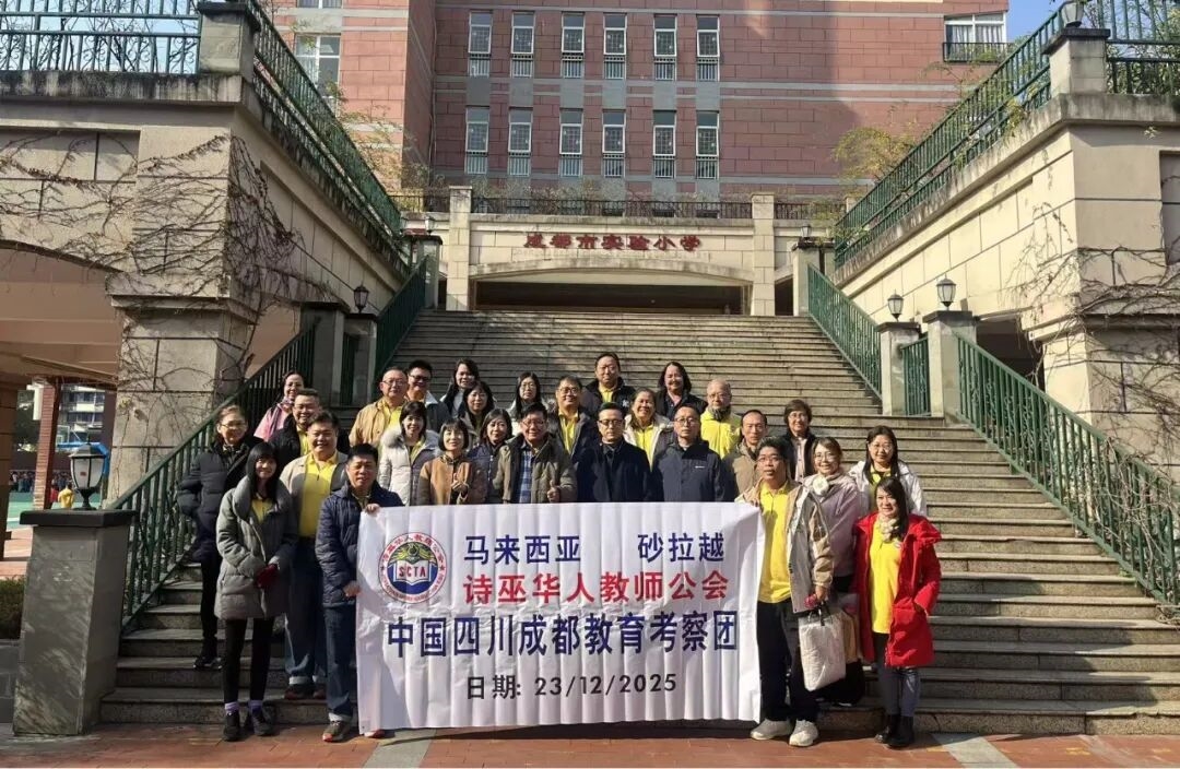 12月23日,马来西亚沙捞越州诗巫华人教师公会考察团走进成都市青羊区,先后参访成都市实验小学与成都市泡桐树小学西区分校,开展了一场跨越国界的教育文化交流之旅。四川省侨办、成都市侨办、青羊区教育局、区侨台办、区侨联相关负责人参与交流活动,共同见证中马教育智慧的碰撞与融合。