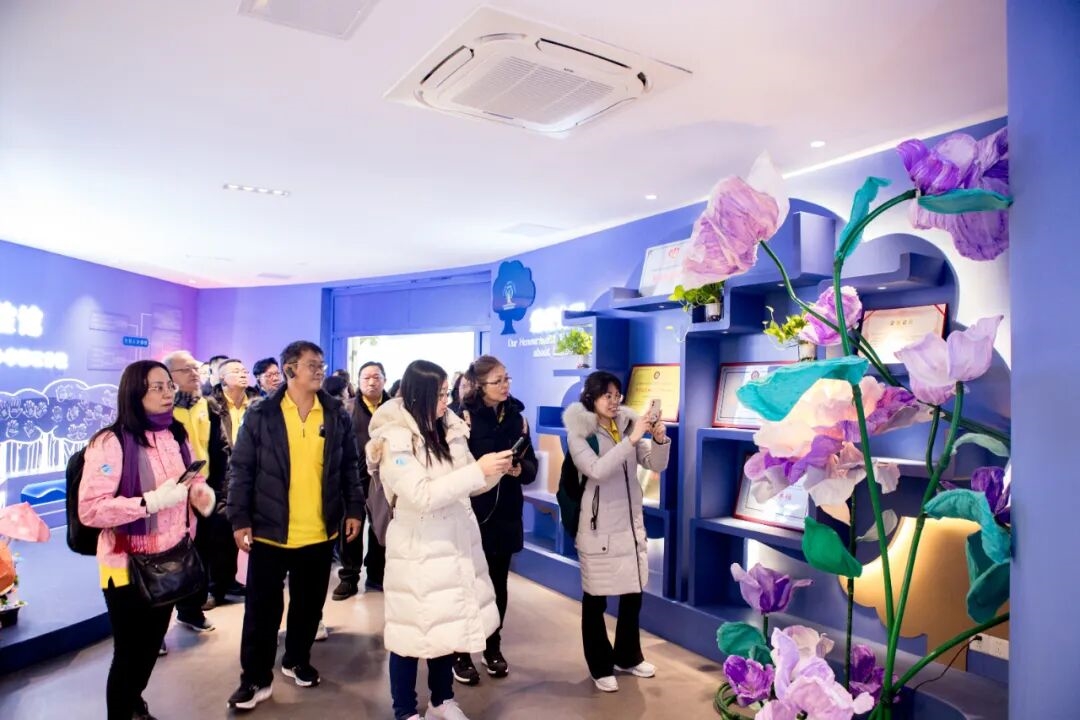 当日下午,参访团步入成都市泡桐树小学西区分校。参访团首先走进学校家风馆与姓氏学院,斑驳的木算盘、老式录音机等承载岁月的老物件,与学生手写的“勤俭持家”“诗书继世”等家风家训相映成趣。小小讲解员自信分享姓氏渊源与手绘家谱故事,让参访团直观感受到中华优秀传统家训如何融入日常育人场景。随后,众人漫步灯彩博物馆,馆中陈列的龙灯、宫灯等传统彩灯与卡通、科幻主题的创意灯彩并置,展现非遗技艺与童心创造的美妙交融。参访团赞叹:“学校通过多学科融合,让非遗从‘博物馆的静态陈列’化身为学生手中可创造的‘活态艺术’,点亮了孩子的审美感知与文化认同。”