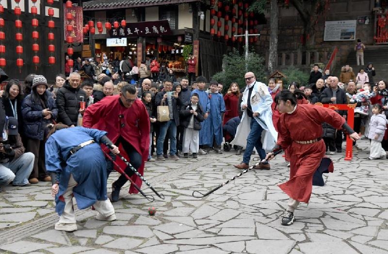 1月1日,民盟金堂县总支在五凤镇接待意大利阿斯蒂市副市长洛蕾塔·博洛尼亚政企代表团一行,以非遗项目“步打球”体验为纽带,推动中欧文化交流。