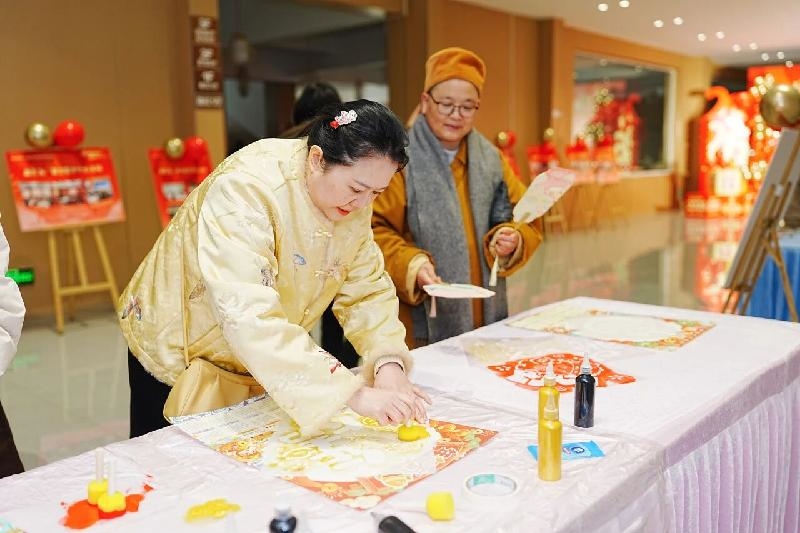 活动还设置了体验区,“同心织福”民俗体验工坊内,棕编、拓印、漆扇等非遗技艺从业者与统战成员面对面互动,大家在亲手制作民俗手作中感受中华优秀传统文化的魅力;“同心送福”春联、福字书写现场,书法爱好者们挥毫泼墨,将新春吉祥的美好祝愿和砥砺奋进的担当精神凝于笔端。