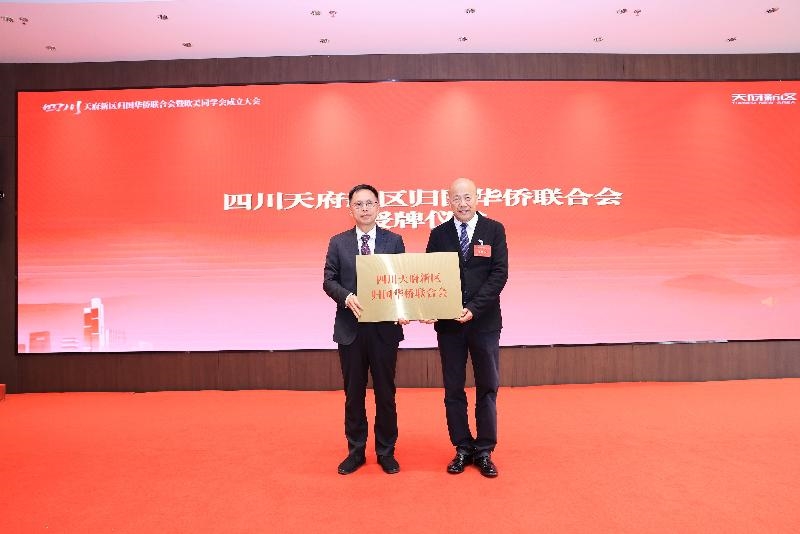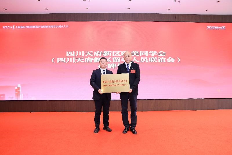 成都市侨联党组书记、主席庞文中与市欧美同学会副会长、秘书长游弋分别向四川天府新区侨联、四川天府新区欧美同学会授牌。新当选的四川天府新区侨联主席、欧美同学会会长程守太作表态发言。他表示,将团结带领全体会员,坚守爱国初心,传承报国传统,在招才引智、建言献策、联络联谊、社会服务等方面积极作为,努力将组织打造为有温度、有活力、有作为的“侨胞之家”与“留学人员之家”。
