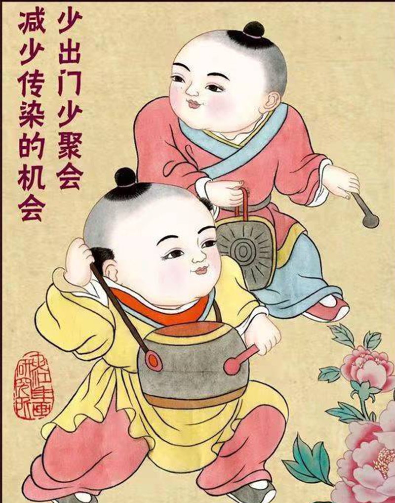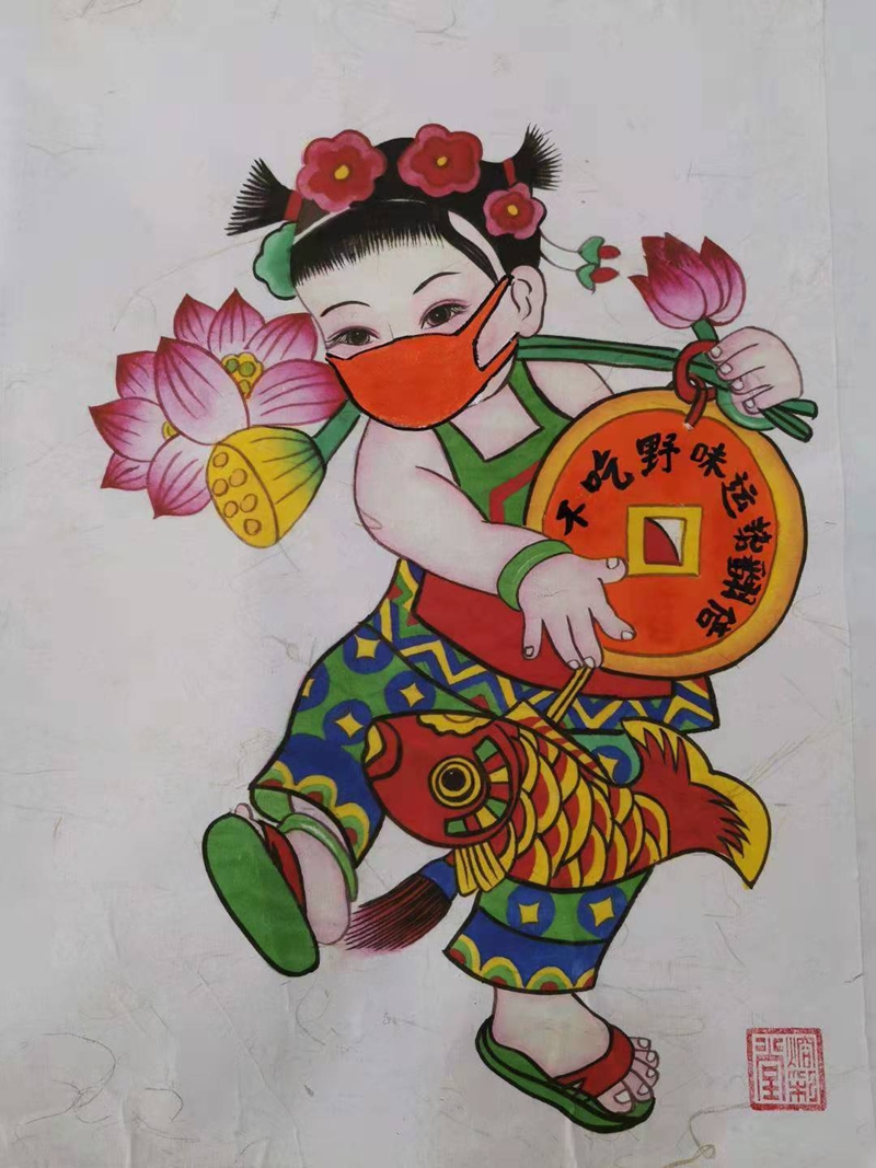 “在这场没有硝烟的疫情阻击战中,虽然非遗传承人不像医生护士在一线治病救人,但是我们非遗传承人也必须要在防控疫情上出一份力。”张荣强说。这也正反映了各民主党派对疫情防控的共同心声。这次防疫年画创作,非遗传承人自发拿起画笔,用创新的智慧贡献自己的一份力量。张荣强牵头创作的8幅年画作品把胖娃配上抗击疫情的标语,杨继容牵头创作的8幅年画,一个个年画人物都戴上了口罩,还有的手持消毒液体、酒精和“不吃野味运势翻倍”等装饰物。这些年画,既容易让大家记住日常生活的注意事项,又让大家看到喜庆的胖娃产生愉悦的心情,缓解“宅”在家的压抑,增强了人民群众打赢这场防疫阻击战的信心。