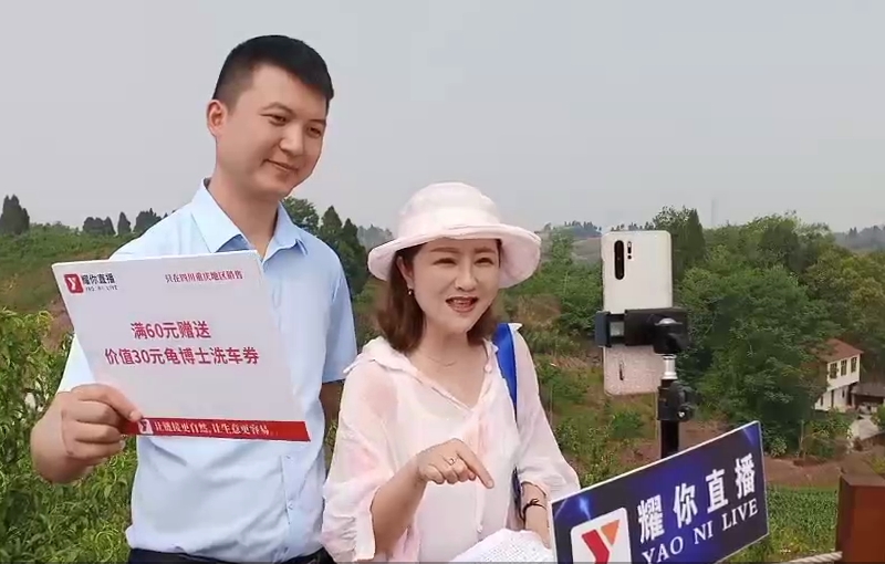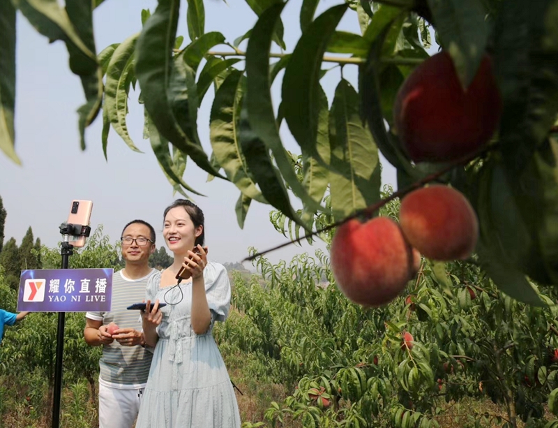 看,民进内江市委两名会员正面对镜头,通过直播形式,为广大网友推荐内江市东兴区郭北镇九棵树村特色农产品——夏满蜜桃。