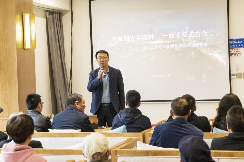 陈凯就温江区“两河一心”营城策略中江安河活力新潮消费带策划与营建情况,系统介绍了消费带建设中生态价值向商业价值转化的背景意义。