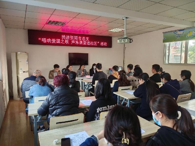 为进一步满足居民群众文化需求,丰富社区居民业余文化生活,3月29日上午,民进资阳市总支在雁江区资溪街道雁南社区开展“唱响爱国之歌 声乐课堂进社区”公益培训活动,30余名社区居民参加活动。