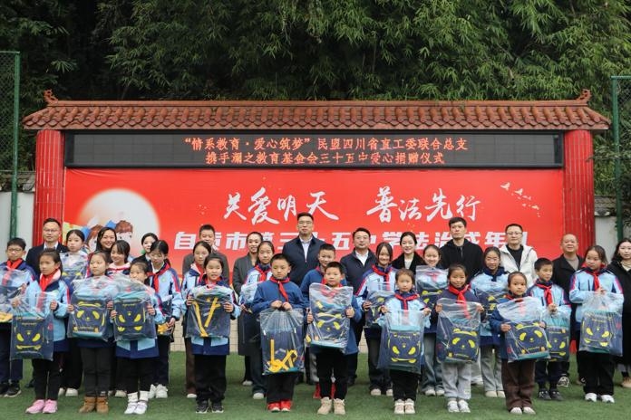 12月29日,民盟四川省直工委联合总支携手澜之教育基金会走进自贡市自流井区,先后在飞龙峡镇漆树小学校与自贡市第三十五中学校开展“情系教育·爱心筑梦”主题捐赠活动,以实际行动支持乡村教育发展,传递社会温暖与关怀。