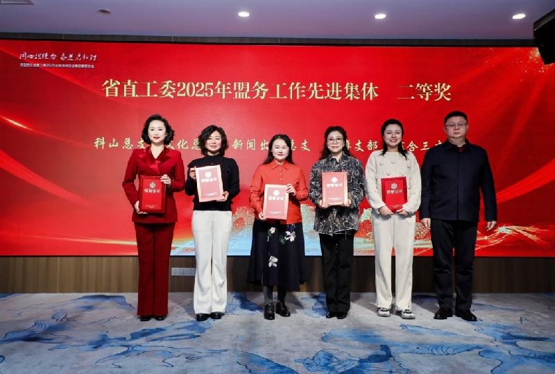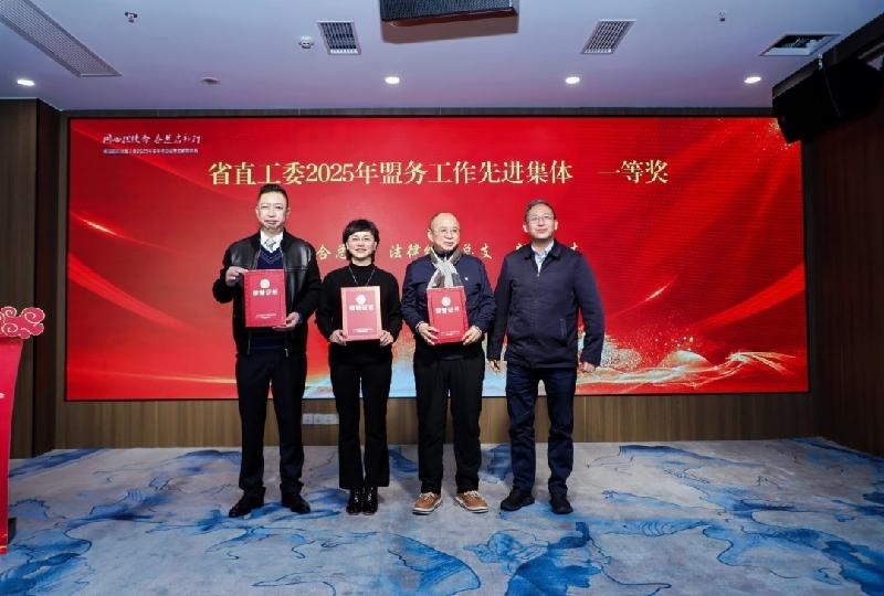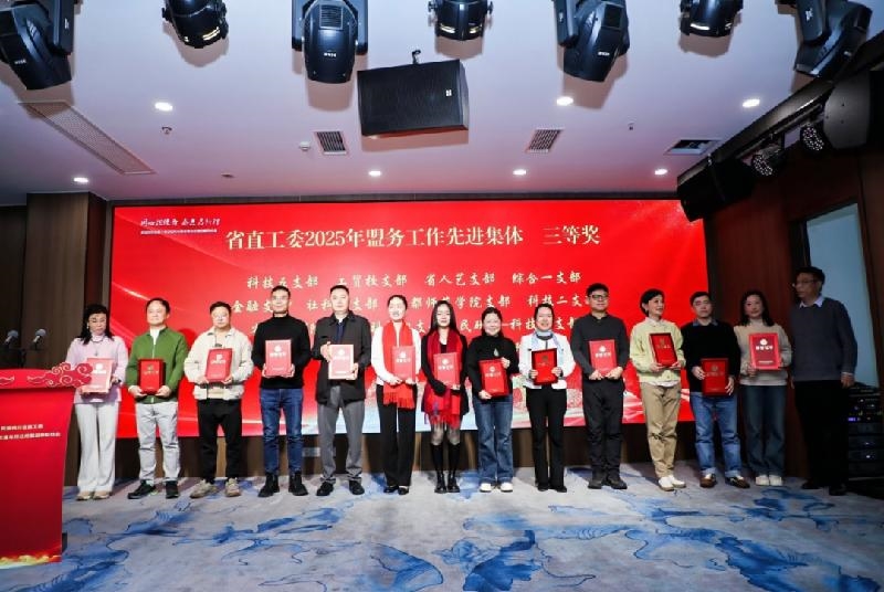 会议还宣布了省直工委2025年度先进集体和先进个人名单,荣获省直工委2025年度盟务工作先进集体登台领奖。