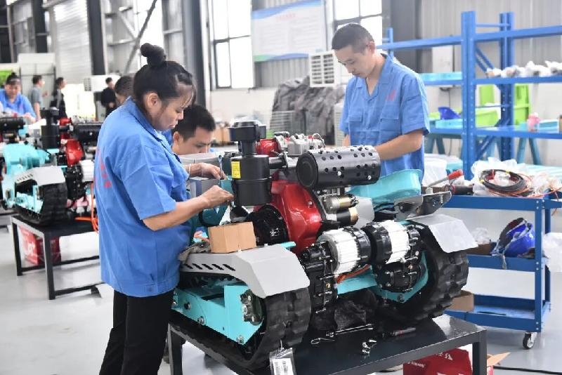 达州丘陵山区现代农机装备产业园内的农机生产线。达川区委宣传部供图