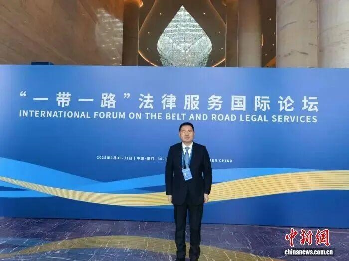 图为2025年3月,全国政协委员、民盟四川省委会副主委、四川恒和信律师事务所主任李正国参加“一带一路”法律服务国际论坛。受访者供图