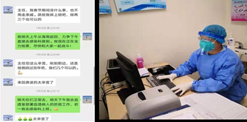 何咏梅,彭州市知联会理事,彭州市人民医院内分泌科主任,一个孝顺的女儿。1月23日,刚上完发热门诊的她飞往海南照顾生病的父母。1月24日(大年三十)闻讯新冠肺炎疫情严重,她立即抢票回川。她一边赶路,一边进行科室疫情防控工作部署,第一时间制订了科室应急预案,第一时间安排应急培训和宣教工作……长空千里急归程,分秒必争护群众。一回到彭州,何咏梅顾不上休整,马上投入到抗疫工作中。“若有战、召必回、战必胜”,这是每一个医务人员心中的信条。在何咏梅的带动下,大家勠力同心,忘我工作。科室人员都说:“何主任是大家信赖的主心骨。她回来了,咱们的队伍就能打硬仗、打胜仗!”
