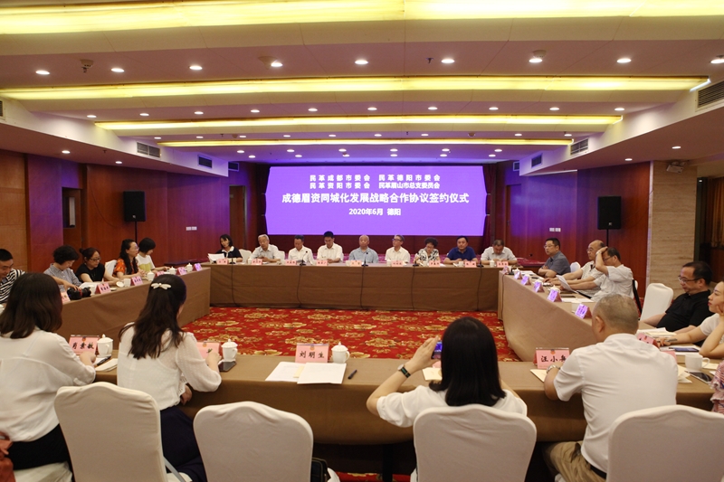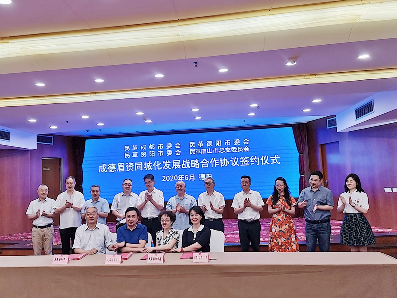 为深入贯彻落实省委“一干多支、五区协同”战略部署及《成德眉资同城化发展暨成都都市圈建设三年行动计划(2020年——2022年)》要求,6月13日上午,成德眉资四地民革经过友好协商,在德阳签订了《民革成德眉资同城化战略合作协议》,这也是全省首个民主党派签订的同城化战略合作协议。民革四川省委副主委、成都市委主委、成都市政协副主席里赞,德阳市委常委、统战部部长何明俊,民革德阳市委主委、市政协副主席罗春华出席活动,成都市委统战部副部长张吉广出席签约仪式。