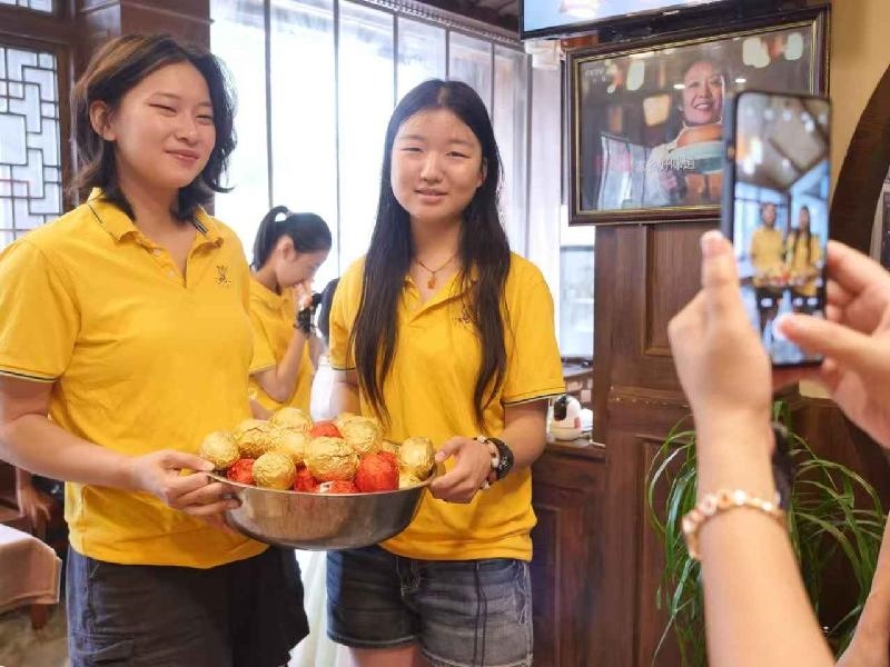 非遗工坊里,孩子们沉浸于糯米鹅蛋的百年技艺。这项源自清代《醒园录》的草木灰碱水浸润工艺,经李氏家族世代改良,需历经选蛋、腌渍、裹糯等16道工序,最终以“雪花盖顶”“黄龙缠腰”等寓意吉祥的造型呈现。当孩子们将裹着红糖馅料的糯米塑成鹅蛋时,指尖触碰的不仅是黏糯的食材,更是蜀地先民“就地取材”的生活智慧与对团圆、安康的永恒祈愿。