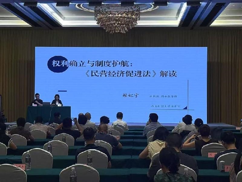 培训会上,西南财经大学法学院副教授、博士生导师、公司法治研究中心副主任赖虹宇教授作专题授课。赖教授深入剖析了《民营经济促进法》立法背景、整体立法结构与核心制度框架,并针对民营企业及企业家权利保障的热点与高频问题,结合实际案例进行了全面深入、通俗易懂的讲解,为企业在法治轨道上健康持续发展提供了有力指导。