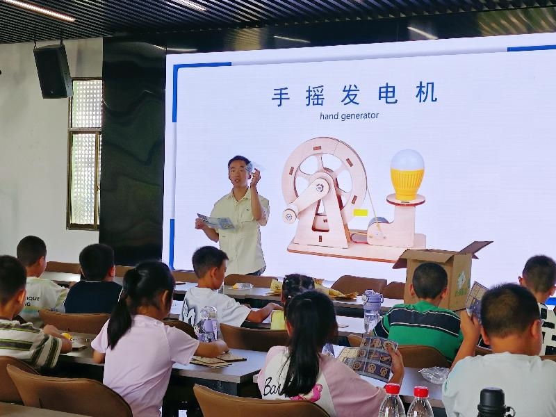 本次活动以关爱儿童身心健康、促进全面发展为宗旨,通过丰富多彩的课程和活动,为孩子们打造了一个安全、快乐、充实的暑期学习成长平台。在“日地月三球仪模型”手工课上,孩子们纷纷动手参与三球仪的制作,拼接、调试……每一步都充满了探索乐趣,通过亲身实践,激发孩子们对宇宙的好奇心,培养他们的观察能力和空间想象力。在“手摇发电机”科学实验课上,孩子们一步步拼装手摇发电机,从连接电线、固定螺丝到最终完成组装,大家始终专注投入,当看到灯泡亮起的那一刻,孩子们脸上洋溢着兴奋与惊喜,纷纷感叹科学实验带来的神奇魅力。