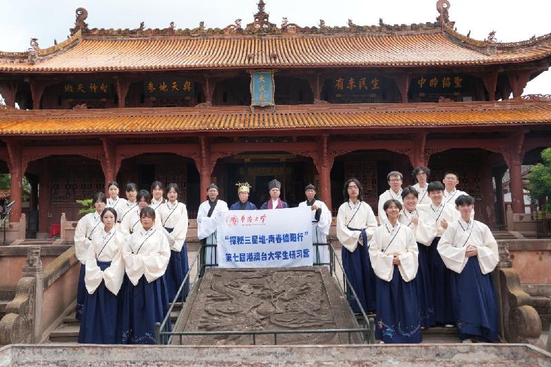 7月25日上午,“探秘三星堆·青春德阳行”第七届港澳台大学生研习营的16位同学前往德阳文庙,参观文庙建筑,学习儒学文化,体验儒家礼仪。