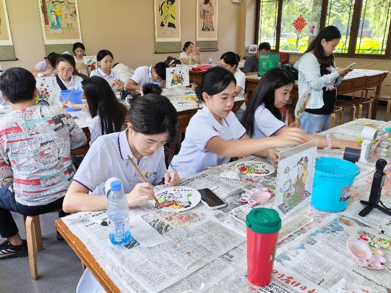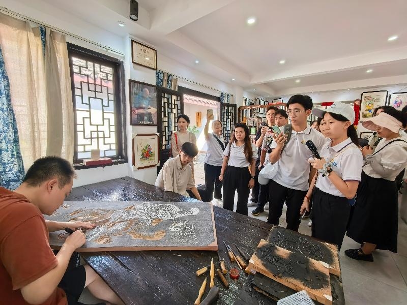在年画村,华裔青少年们漫步在古色古香的街巷,欣赏着充满民俗风情的年画作品,深入了解绵竹年画这一国家级非物质文化遗产的起源、发展和制作工艺。