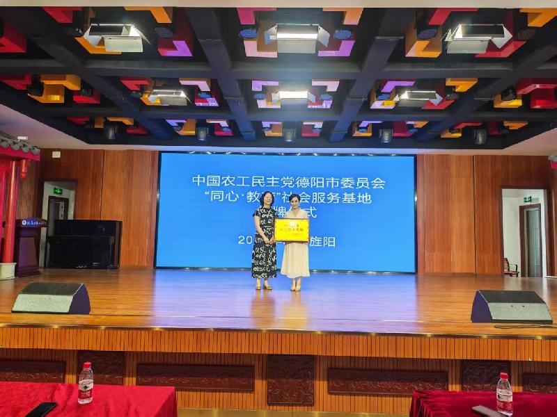 9月4日,农工党德阳市委会在德阳市华山路学校举行了“同心·教育”社会服务基地授牌仪式,标志着这一教育创新服务基地正式启用。农工党德阳市委会副主委郑红出席仪式并讲话。