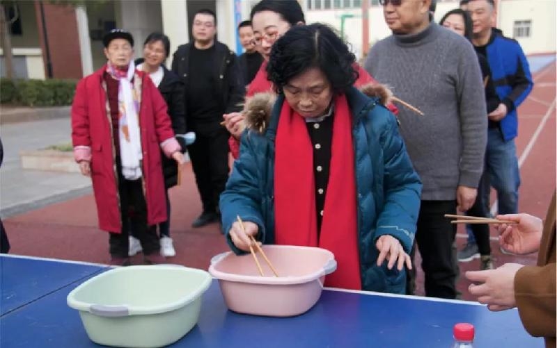 座谈会结束后,与会人员来到操场上开展了带球接力、花样投篮、竹筷夹乒乓球等趣味十足的活动,大家在运动中增强了体质,愉悦了身心,增进了感情。