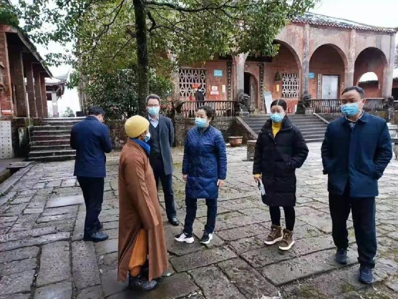 在云雾山寺、净土寺,王蔚荩一行通过听讲解汇报、看展板资料等方式,仔细查看了我县宗教场所的基础设施、了解寺庙的建筑历史、信众数量、资金来源及使用等情况。同时,对宗教场所疫情防控、消防工作等进行了检查。