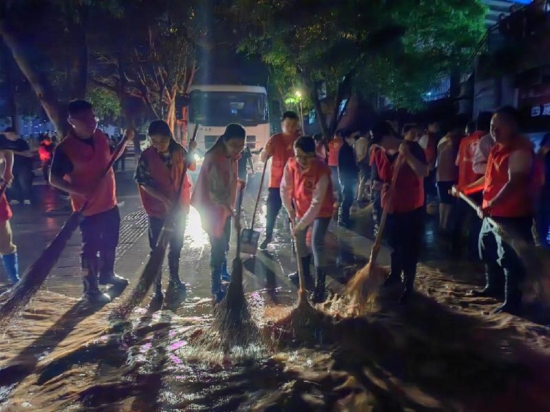 宣汉县委统战部全体干部职工闻令而动,火速集结志愿者服务队,在县委统战部副部长焦胜的带领下,奔赴滨河路及相应支街路段开展防汛救灾工作。