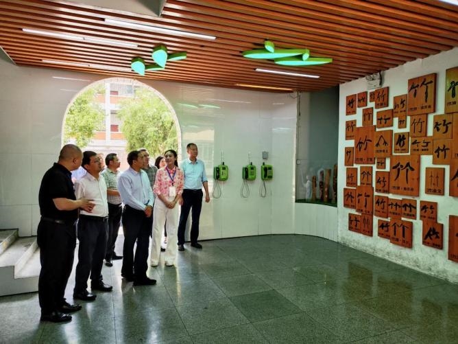 调研组一行参观了校园文化建设,练友全就学校涉台工作开展情况、体会与收获、反思与成长等方面进行了专题汇报。