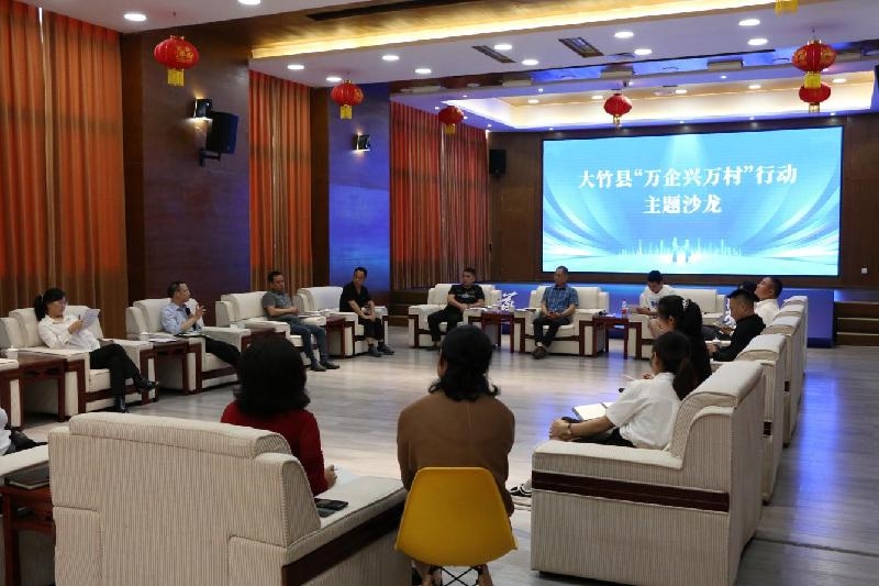 近日,达州市大竹县工商联开展“万企兴万村”行动主题沙龙活动,搭建政企交流平台,共商村企结对帮扶工作。县委统战部副部长、县工商联党组书记邓利,县工商联主席、商会会长郝玲玲参加此次活动。