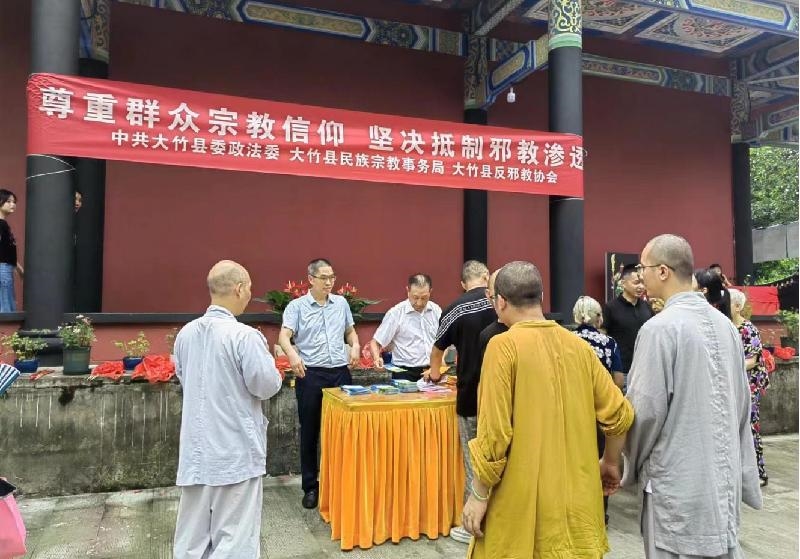 近日,大竹县委统战部联合相关部门(单位)深入净土寺、云雾山寺、竹阳天主堂等宗教活动场所,开展“尊重群众宗教信仰·坚决抵制邪教渗透”主题宣传活动。