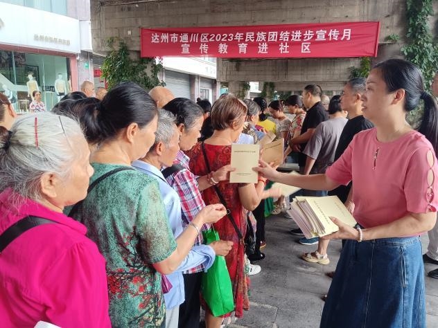 “再给我拿一本宣传资料!”9月19日,达州市通川区民族团结进步宣传月“七进”活动走进红旗路社区。宣传展台刚搭好,社区群众便围聚起来,争先恐后拿资料,咨询政策。