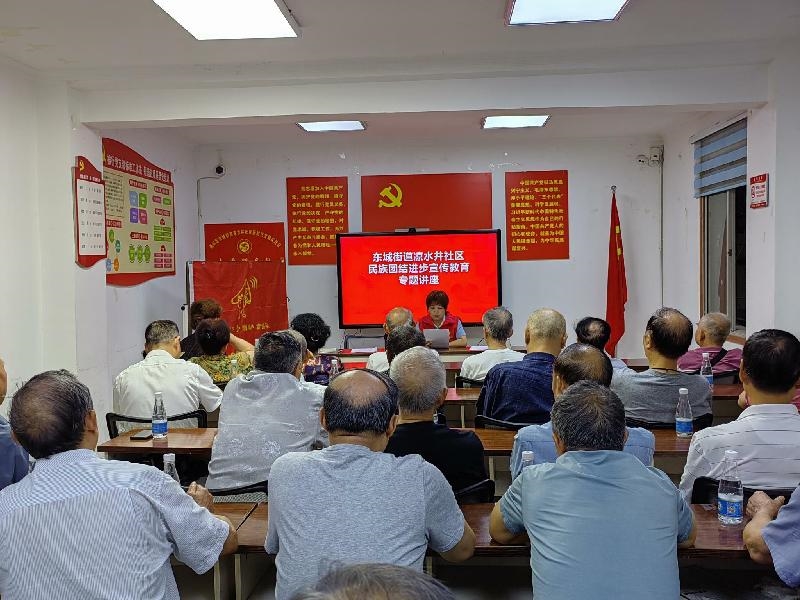 二是民族团结进步宣传月“进社区”。采取“领导干部带头讲、党员群众人人讲”的方式,积极开展“小喇叭”理论宣讲、院坝宣讲会等活动,用通俗易懂的语言和灵活多样的形式,讲清、讲细、讲好党的民族政策、法律法规、优秀传统文化以及民族团结进步基本知识,进一步铸牢中华民族共同体意识,把宣传党的民族政策、弘扬中华民族传统文化融入社区环境建设、融入居民日常生活,让中华民族共同体意识在广大群众中,内化于心、外化于行。