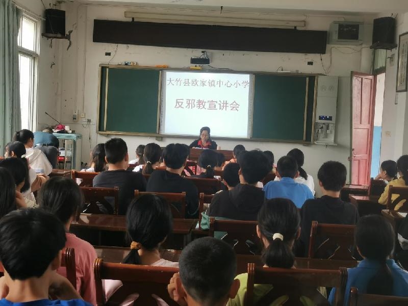 近日,大竹县欧家镇开展“反邪教警示教育进校园、进乡村”普法宣传活动,有效增强了群众破除封建迷信、远离邪教的思想意识。