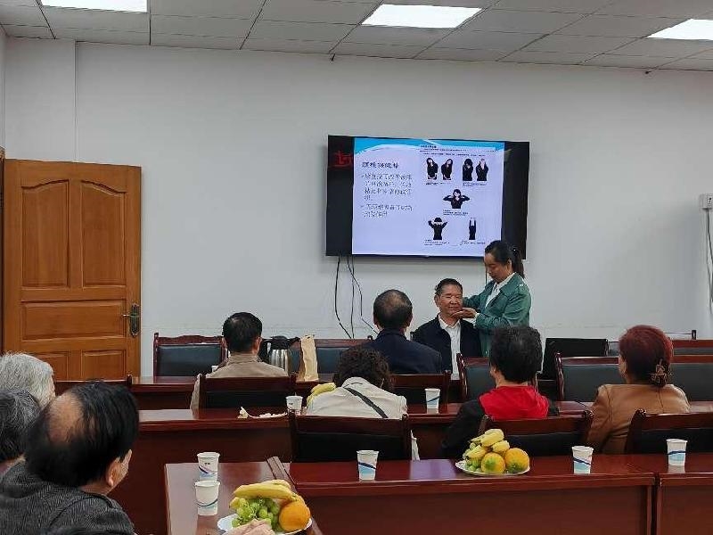 座谈会后,市委会还邀请达州市中西医结合医院、德仁医院的3名医护人员为老会员们讲解如何预防和控制高血压、糖尿病、肩颈等疾病;会前,市委会办公室工作人员带领老会员参观了机关文化墙。