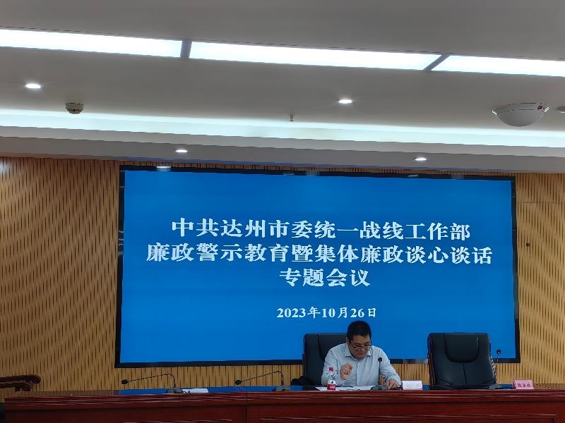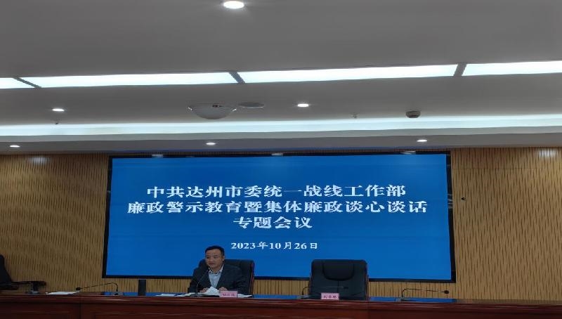 会议强调,要全方位多角度持续常态化开展廉政警示教育活动,教育引导全体干部职工练好思想上的“内功”、廉洁自律的“防功”、划清公与私的“硬功”,坚定廉洁从政的意识和反腐倡廉的决心,为奋力推动达州统战工作再上新台阶提供坚强的纪律保障。