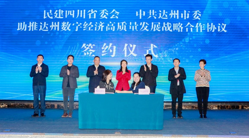 中共达州市委常委、统战部部长、市总工会主席王蔚荩主持会议并代表中共达州市委与民建四川省委会专职副主委、省政协副秘书长李芳芳签订《民建四川省委会 中共达州市委 助推达州数字经济高质量发展战略合作协议》。