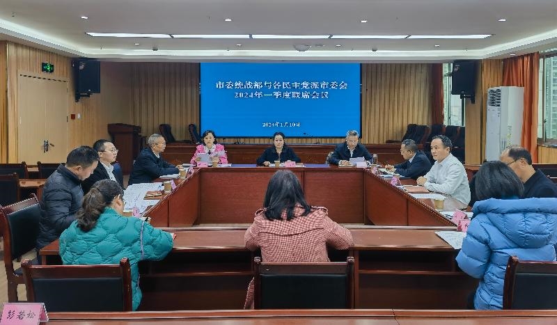 1月10日,达州市委统战部与各民主党派市委会2024年一季度联席会议召开。市委常委、统战部部长、市总工会主席王蔚荩出席会议并讲话。民革市委会主委、市人大常委会副主任王全兴主持会议。