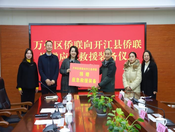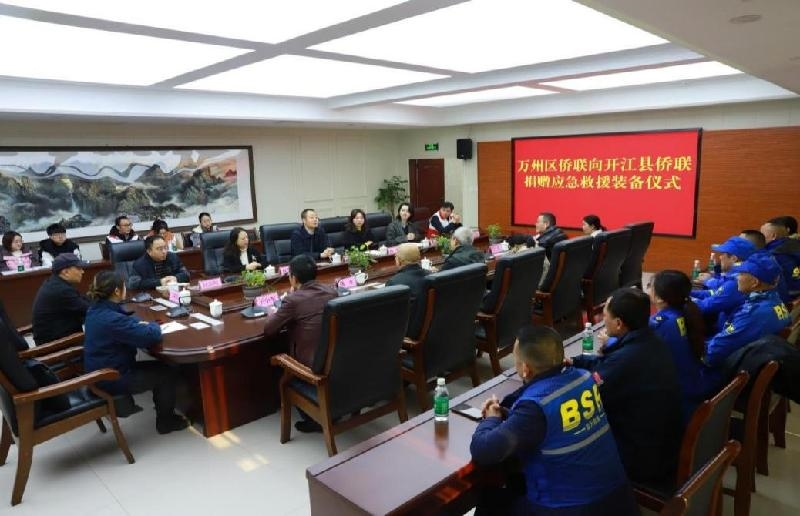1月9日上午,重庆市万州区侨联向开江县侨联捐赠应急救援装备仪式在开江县职工活动中心三楼会议室举行。重庆市万州区委统战部副部长、区侨联主席韦蜀泉、副主席张红,万州区侨联兼职副主席周湧、兰波,达州市侨联党组书记、主席王新亭、秘书长何芸芊,开江县人民政府副县长杨黎及相关部门负责人30余人参加了此次捐赠仪式,捐赠仪式由开江县侨联主席刘小璇主持。